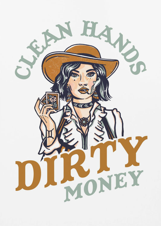 Saubere Hände, schmutziges Geld, Poker, Cowgirl | Leinwand