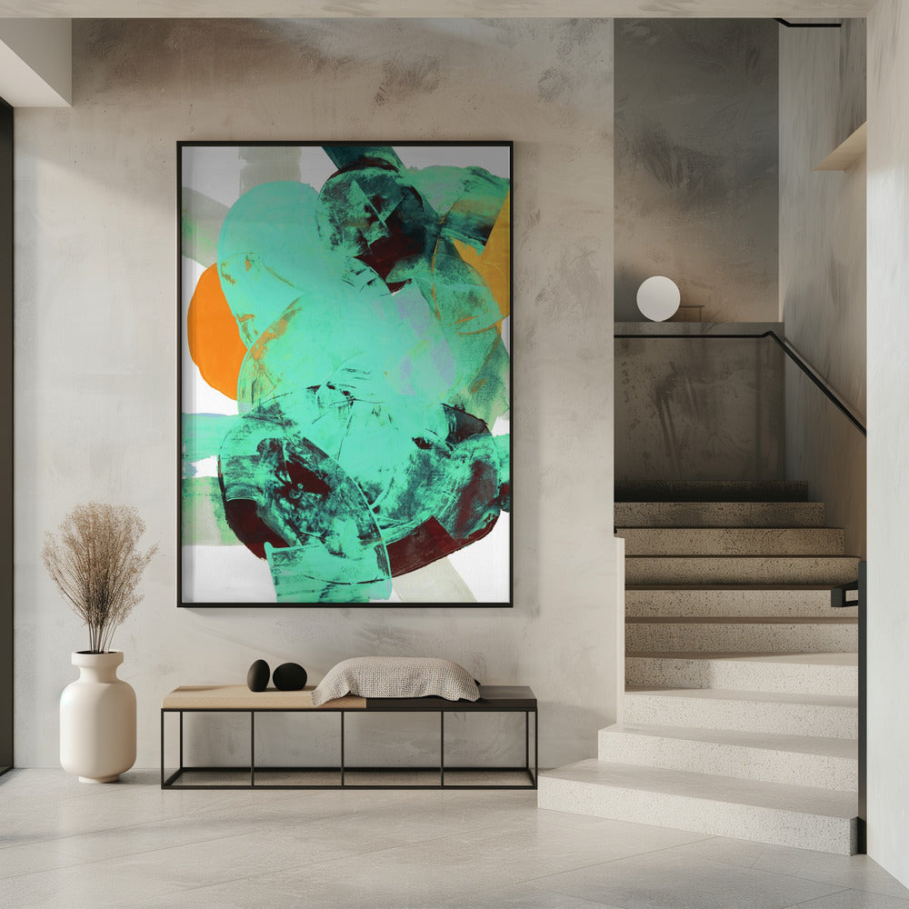 Aqua Teal Burgandy Orange Neutral White Abstract 1 | PosterSKU:2899729-5