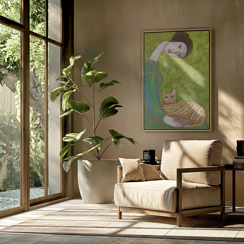 Bent Neck Lady with her so loved ginger cat. | Poster