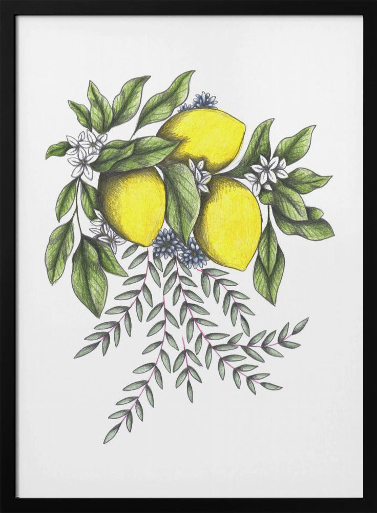 Lemons and Green leaves with Delicate White Blossoms | Poster