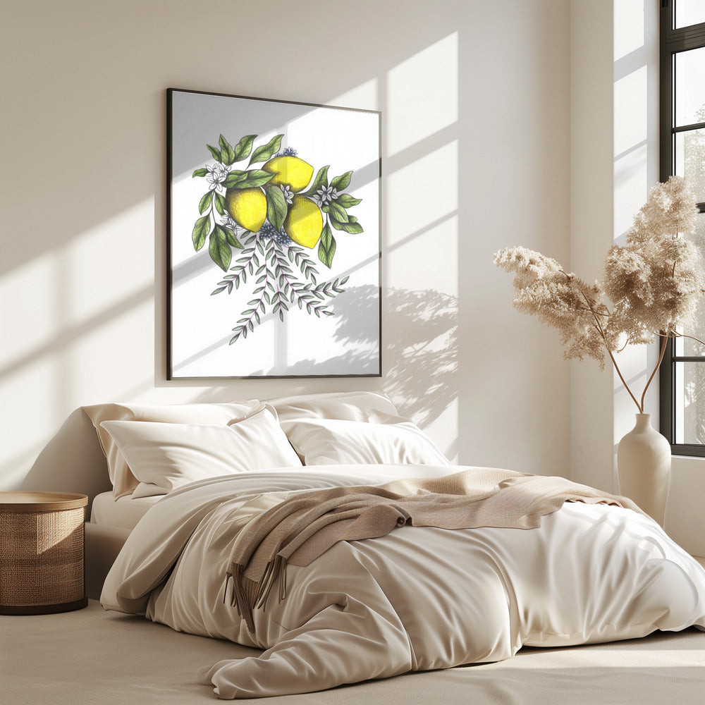 Lemons and Green leaves with Delicate White Blossoms | PosterSKU:3127922-5