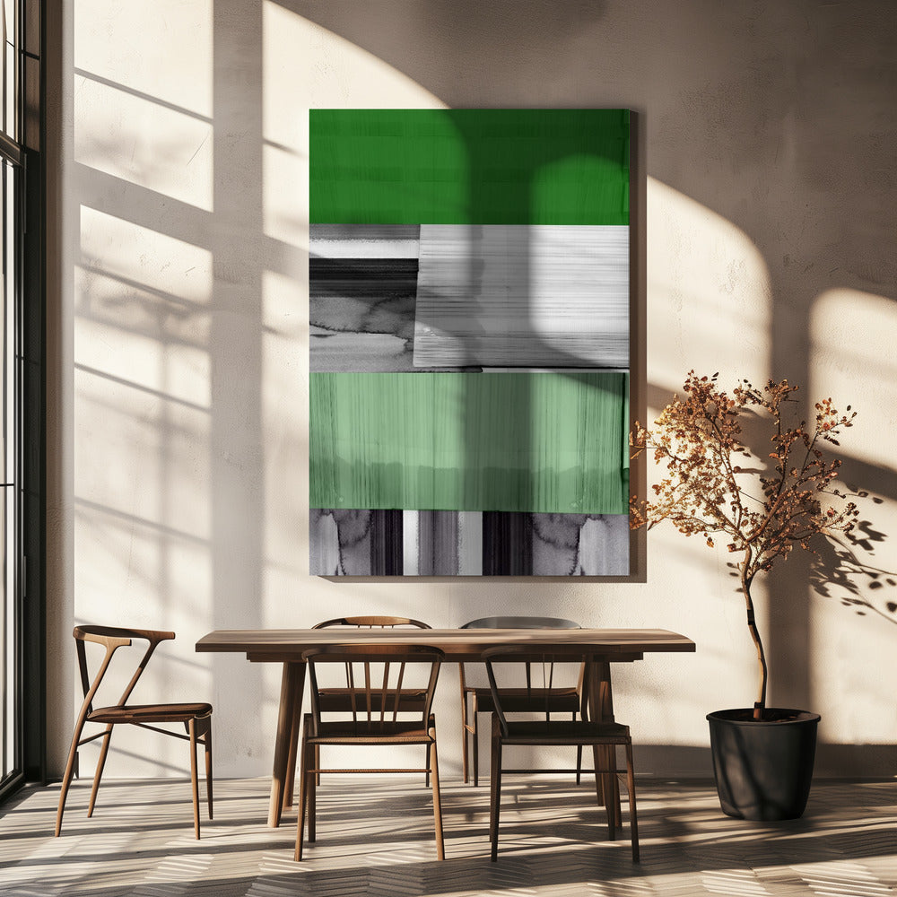 Abstrakt Schwarz Weiß Grün Grau 1 | Leinwand