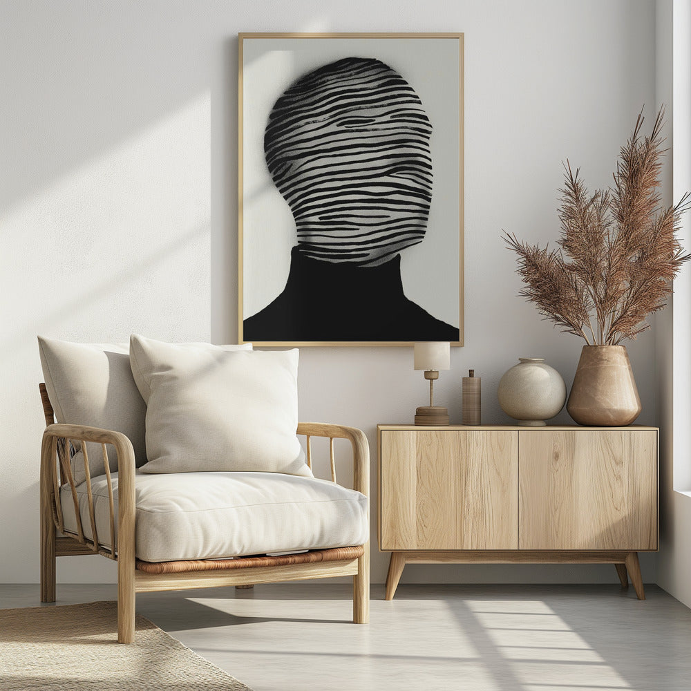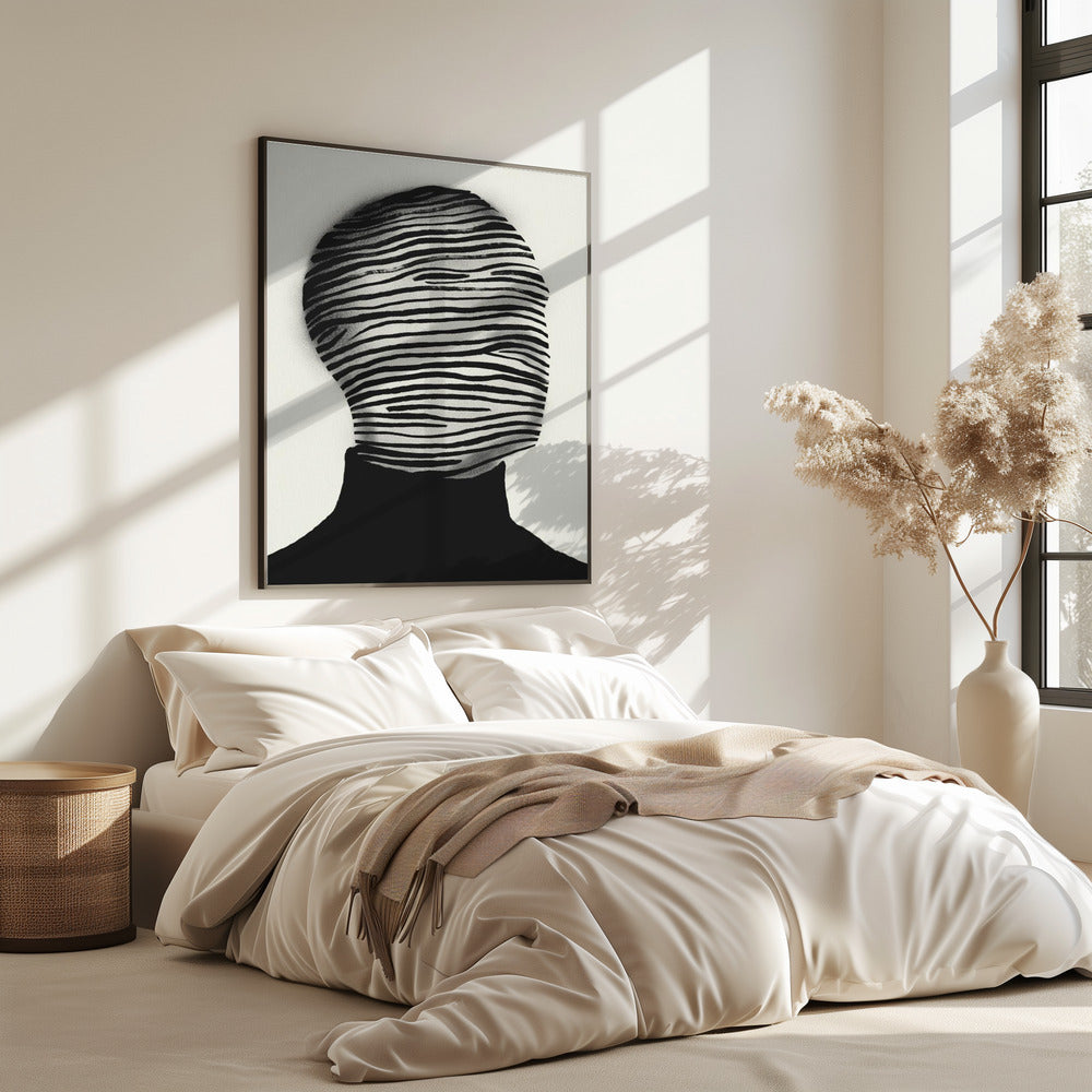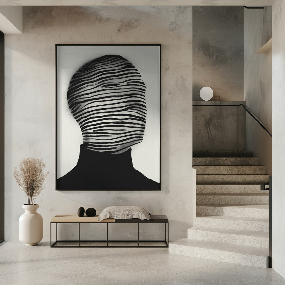 Abstrakter Kopf in schwarz-weißen Streifen gehüllt | Poster