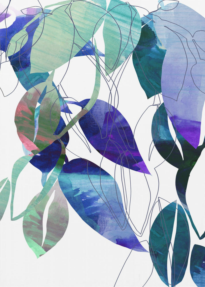 Botanische Blattdruckkunst in Marineblau 3 | Poster