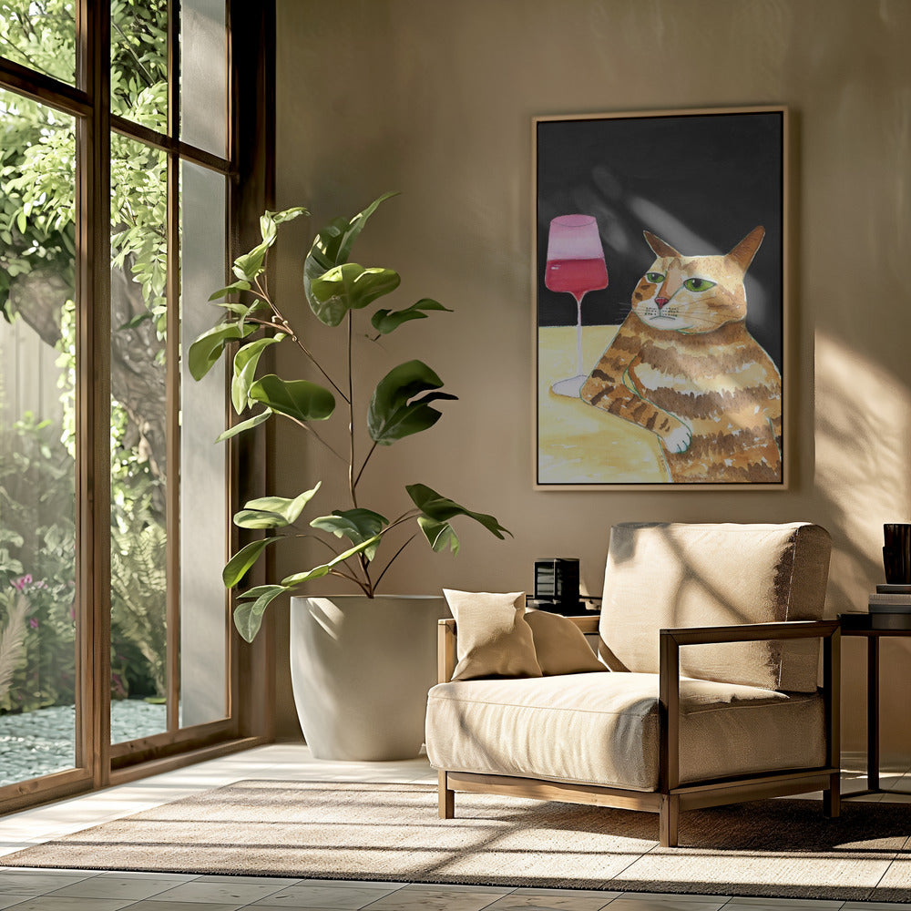 Katze Freitagabend trinkt Wein Lustiger Katzenhumor PosterSKU:2558616-5