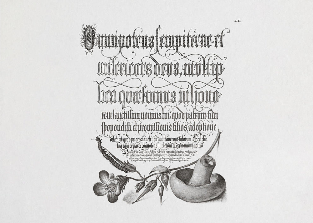 Tausendfüßler, Wald-Storchschnabel und Pilz, horizontal, SW | LeinwandSKU:2500754-10