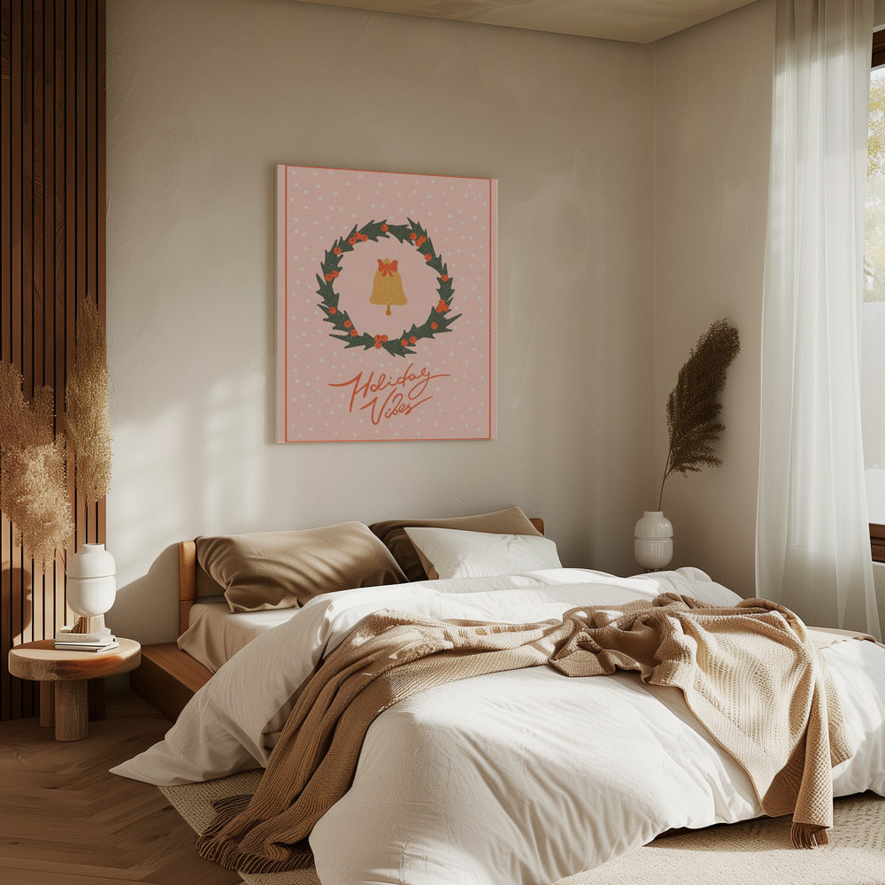 Weihnachtskranz mit Glocke und Schleife | Leinwand