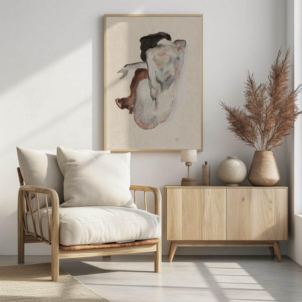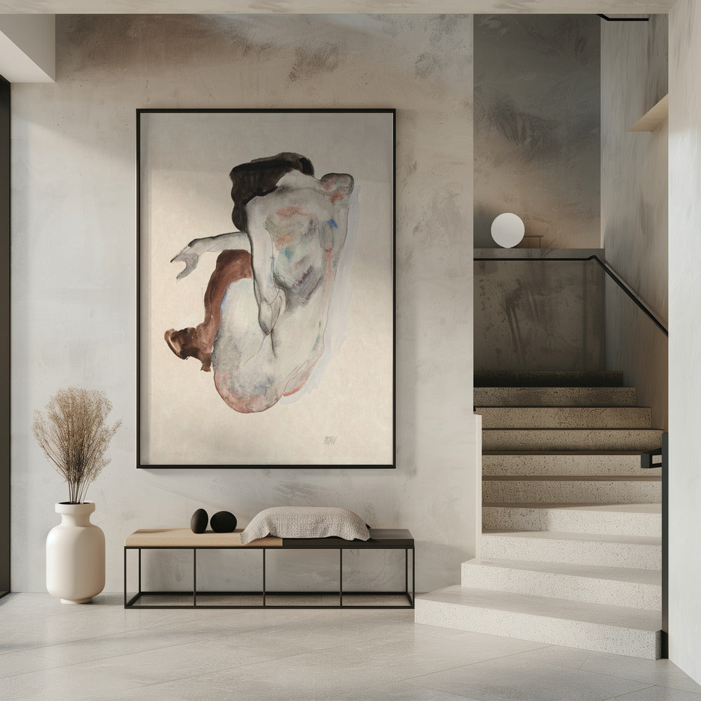Hockender Akt in Schuhen und schwarzen Strümpfen 1912 | Poster