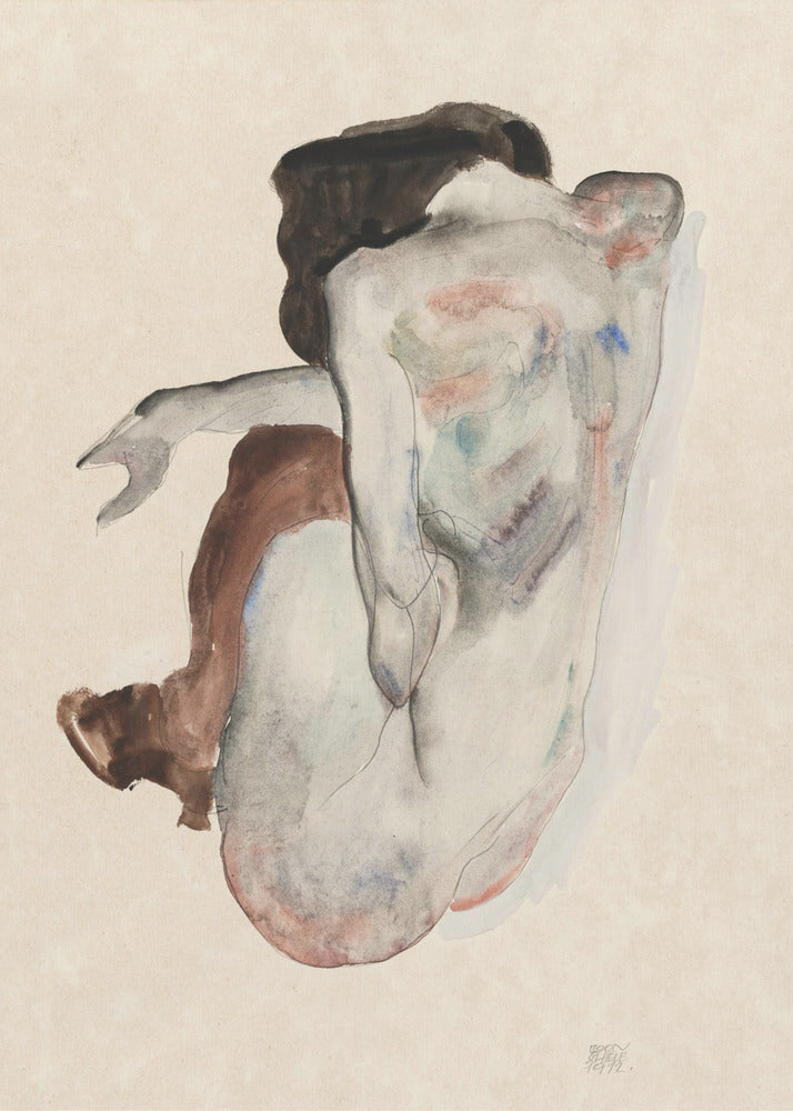 Hockender Akt in Schuhen und schwarzen Strümpfen 1912 | PosterSKU:2565063-5