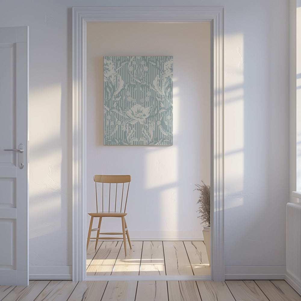 Floral Heritage Morris monochrome Streifen kreideblaues Muster | Leinwand