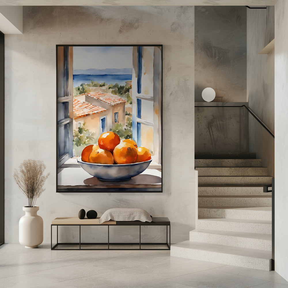 Orangenschale im Fenster | Poster