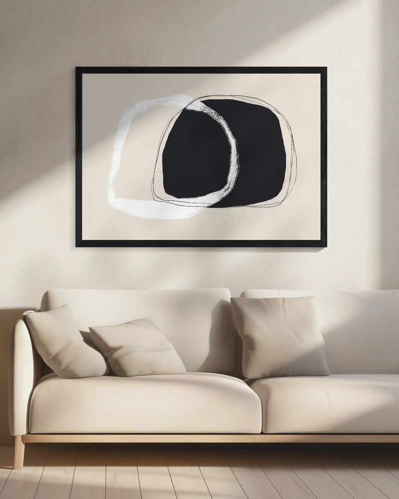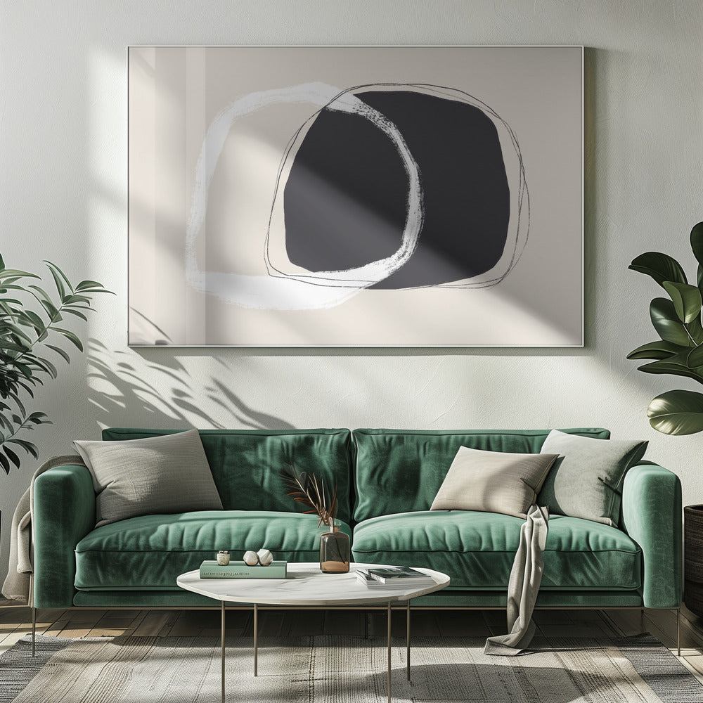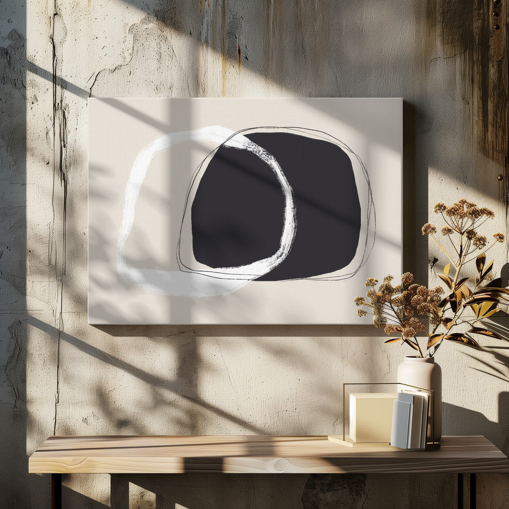 Überlappende unregelmäßige Formen in Schwarz und Weiß | Leinwand