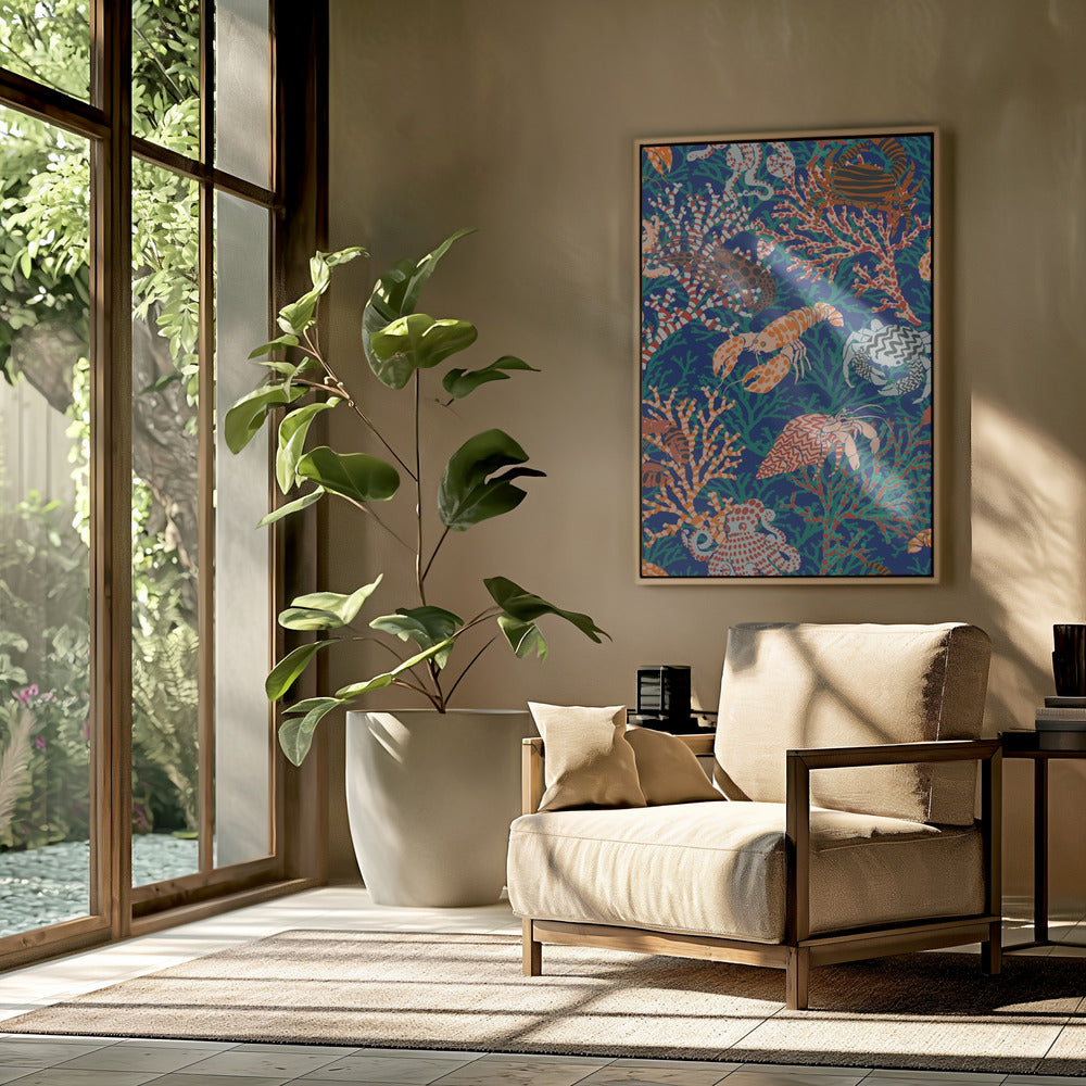 Lebendiges Korallenriff-Muster in Blau und Orange | PosterSKU:2892031-5