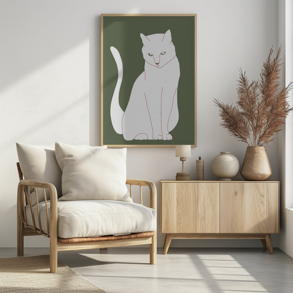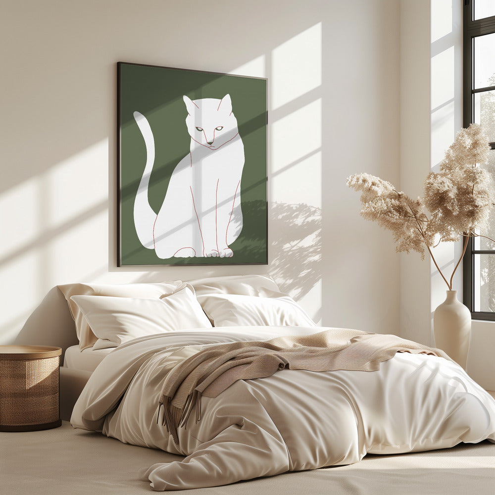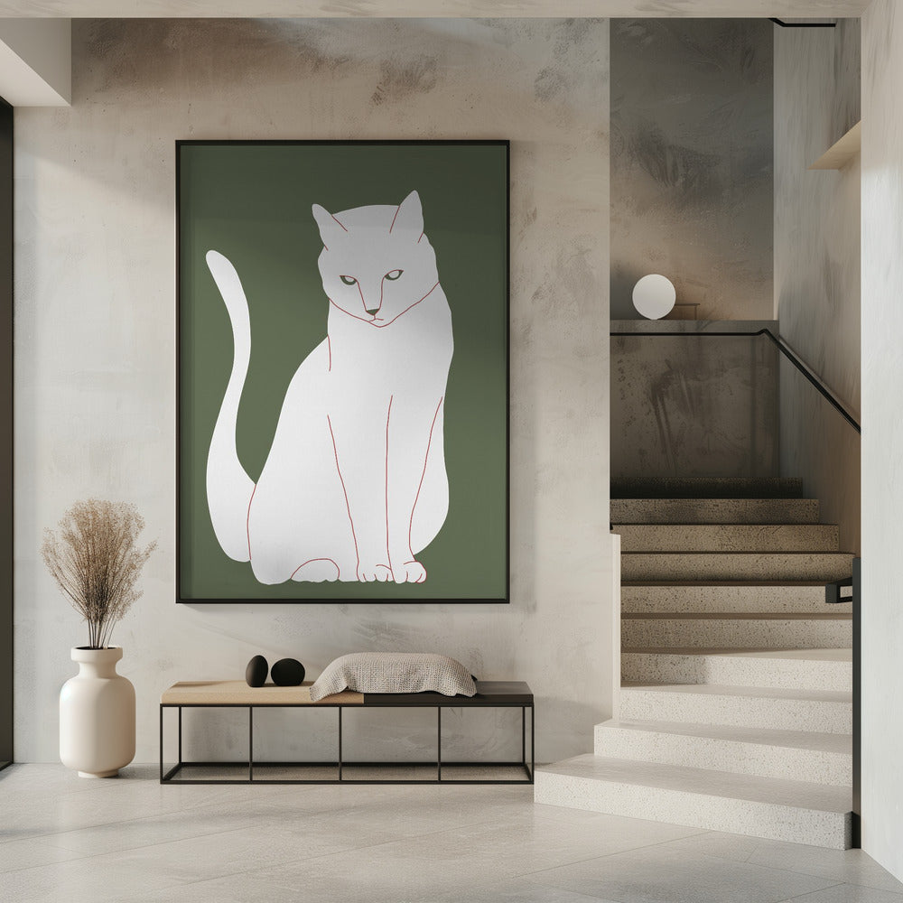 Weiße und grüne Katze | Poster