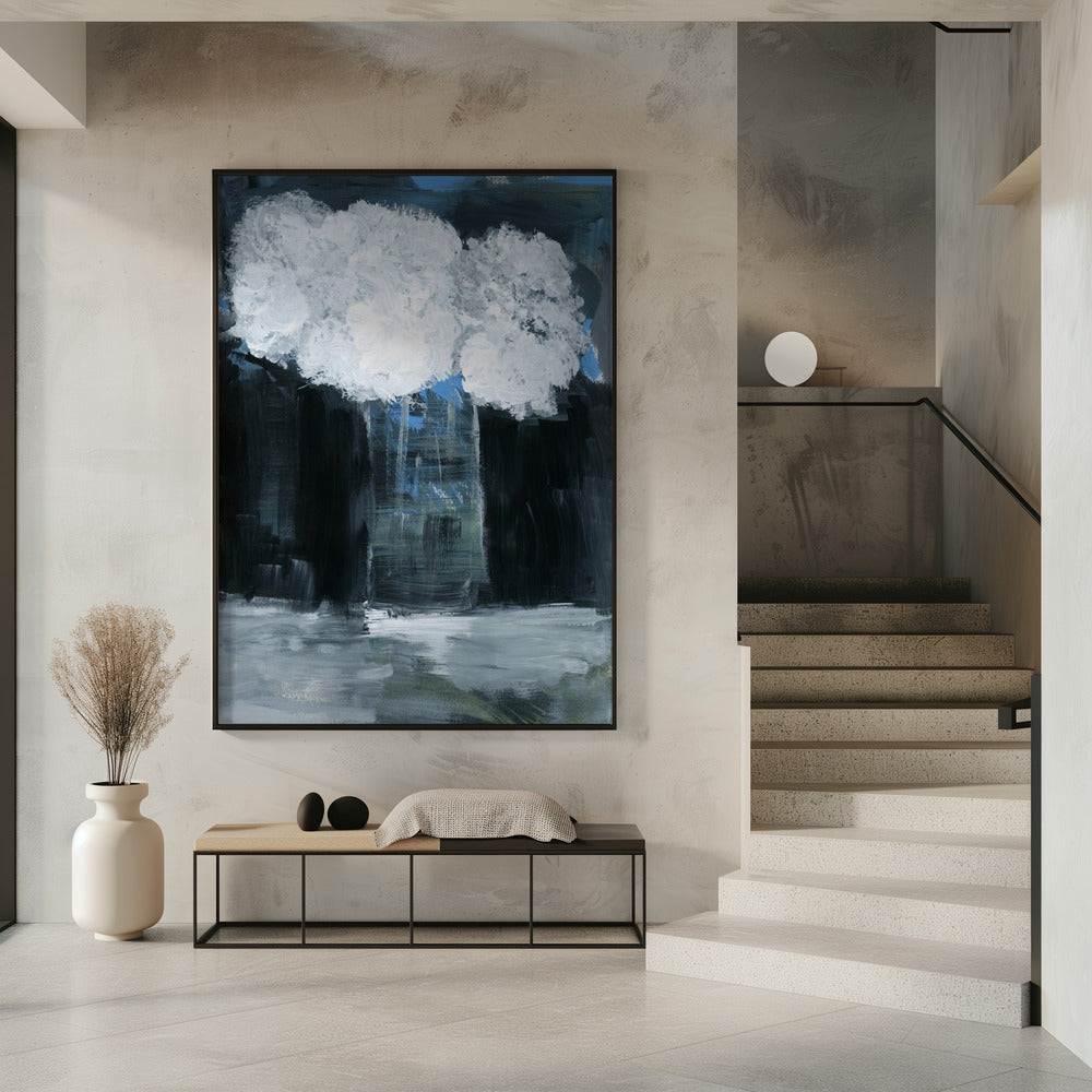 Weißer Schneeball-Viburnum in Vase auf schwarzem Hintergrund | Poster