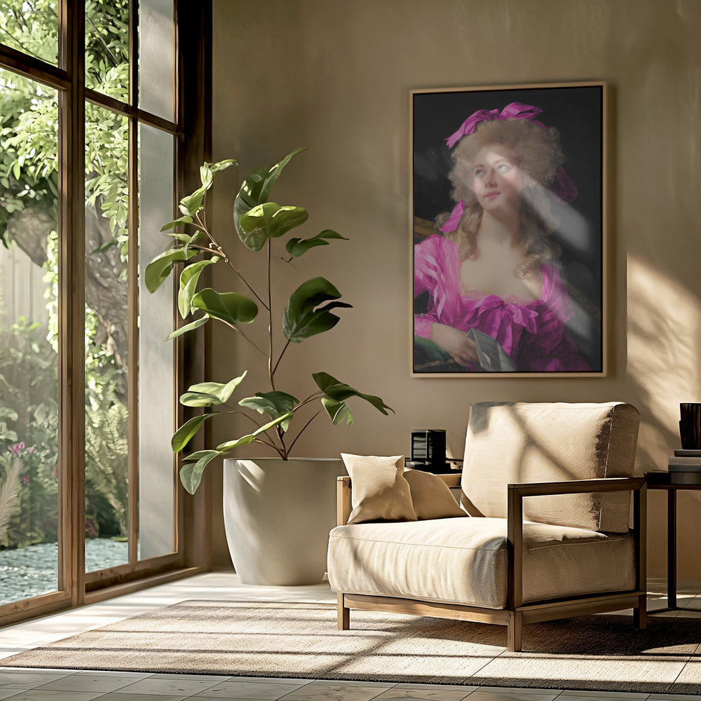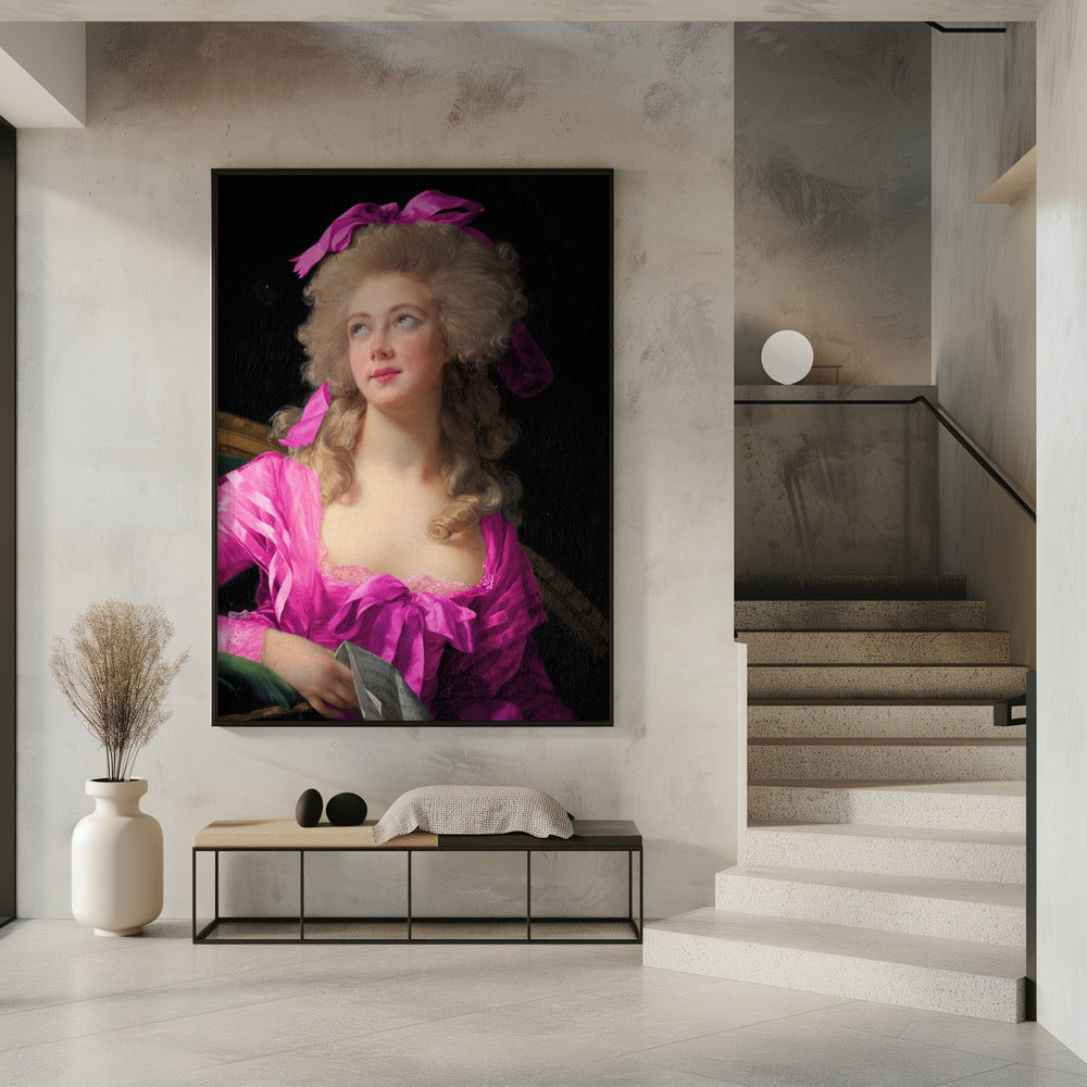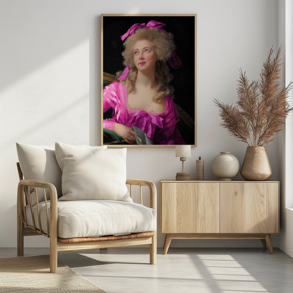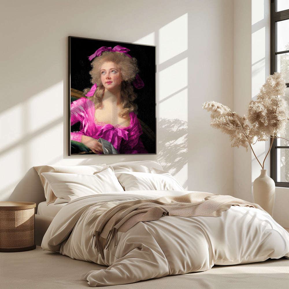 Frau in einem leuchtend rosa Kleid und mit Schleife | PosterSKU:3083170-5